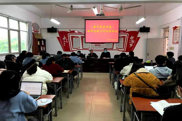 根据省委教育工委、省教育厅《关于认真学习易炼红同志在省委教育工作领导小组2022年第一次全体会议上的重要讲话精神的通知》(〔2022〕3 号)和《华亿在线开展教育思想大讨论工作方案》(校党字〔2022〕28 号)的部署和安排。4月15日上午10:00,数字贸易学院在天工校区B201会议室召开了教育思想大讨论座谈会。院长刘德华出席会议,数字贸易学院党总支部书记谭文武主持会议,学院其他领导和全体教师参加会议。
