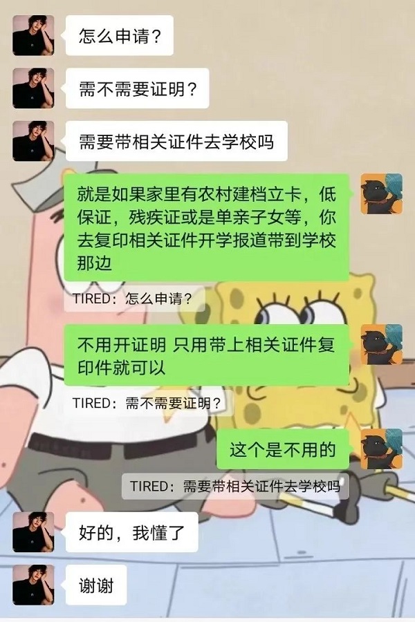 我向他们介绍到,生源地信用助学贷款对象包括:被全日制普通本科高校、高等职业学校和高等专科学校正式录取,取得真实合法有效的录取通知书的新生或高校在读的本专科生、研究生和第二学士学位学生,做到“应贷尽贷”标准:全日制普通本专科学生每年贷款额度不超过12000元。还有国家助学金,国家助学金用于资助高校全日制本专科(含高职、第二学士学位)在校生中的家庭经济困难学生。在我们学校会根据学生贫困程度分成三档。凡是农村建档立卡等经济困难学生、农村低保户子女、农村特困救助供养人员、单亲子女、或是有残疾证等都可以申请国家助学金。