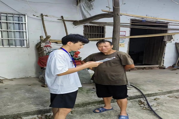 7月20日上午,我来到上饶市横峰县莲荷乡黄藤村,通过了解得知有两位同学今年刚高考完,但是家庭经济情况不容乐观。因此,为了使他们对大学没有后顾之忧,我带着资助宣传手册、工作证以及工作证明来到他们家中,为他们讲解国家资助政策以及校内资助政策。
