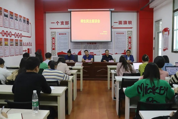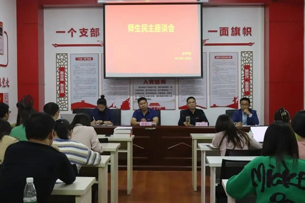 为更深入地了解学生和老师在校学习、生活及工作情况,进一步畅通师生之间的交流渠道,搭建学生与教师互动交流的平台,从而进一步提高学校管理水平,我院于11月9日下午在实训楼C202开展师生座谈会,让师生共同为学校的发展建言献策。校党委委员、校长助理邹建民,教育学院党支部书记、院长晏小庆,党支部副书记刘永东和各师生代表参与了本次座谈会。