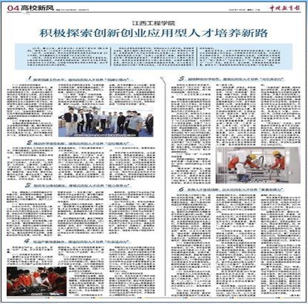 学校创新创业应用型人才培养受到党和政府及社会各界的充分肯定。学校先后两次接受江西教育电视台邀请作“双创”教育经验交流。《人民日报》以《让大学生从“小”做起》为题、《江西日报》以《奋力迈步在创新创业教育之路》为题作了报道,多家主流媒体报道学校创新创业教育130余次。