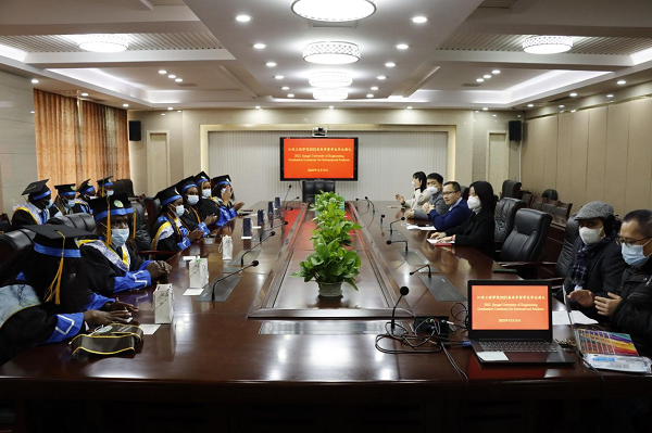 正冠拨穗日,扬帆起航时。12月15日上午,2022届来华留学生毕业典礼在行政楼七楼会议室举行。国际教育学院和国际合作与交流处全体师生出席典礼,典礼由国际教育学院副院长刘成炤主持。