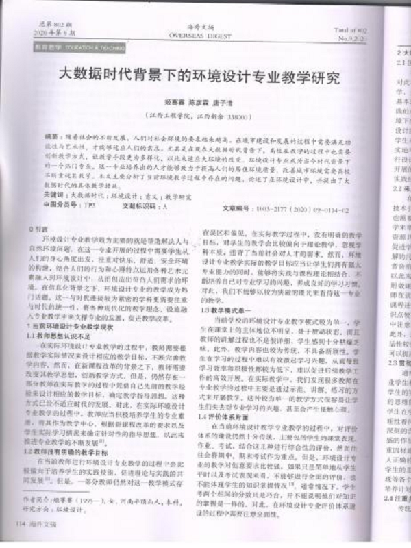 14、论文《大数据时代背景下的环境设计专业教学研究》