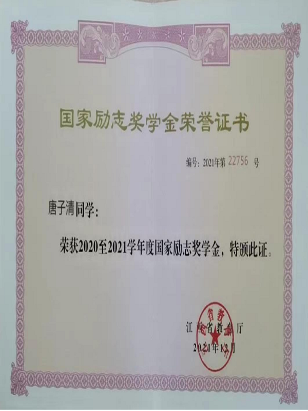 国家发展靠人才,民族振兴靠人才。青年是整个社会力量中最积极、最有生气的力量。正所谓“立志而圣则圣矣,立志而贤则贤矣”。因此我时刻提醒自己要端正学习态度,努力保持积极向上的心态、谦虚谨慎的作风,永不服输的精神。以提升自身的综合素质为目的,以全面发展为奋斗方向,我连续两个学年学业成绩排名前二和综合测评成绩专业排名第二。参加学院工作,尽自己微薄之力,把自己的小我融入祖国的大我,与时代同步,实现人生价值、升华人生境界。