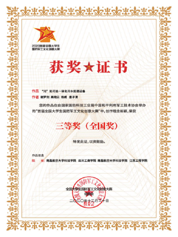 12、2020年首届全国大学生军工文化创意设计大赛国家级三等奖