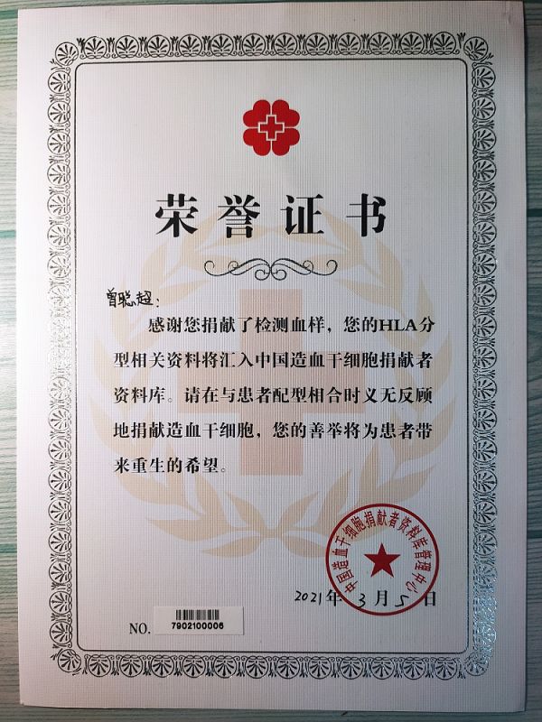 曾聪超同学在2019年加入青年志愿者协会后,2019-2021年期间积极组织并参与各项校内外志愿服务活动,例如赛事、敬老、防疫、防艾、关爱特殊群体等领域的志愿服务活动,至今累计志愿服务时长达900余小时,在活动期间他用自己的行动诠释了担当和使命。他勇于奉献,平日里积极参与无偿献血活动,并登记加入中国造血干细胞捐赠者资料库。在2020年的新冠肺炎疫情防控工作中,他奋勇当先,坚守在抗击疫情的一线,认真做好社区和学校防疫工作,为打赢抗疫阻击战贡献自己的一份力量。同时积极参加分院组织的家电义务维修志愿服务活动。众多志愿活动将当代大学生的风采结合志愿精神展现给身边人。