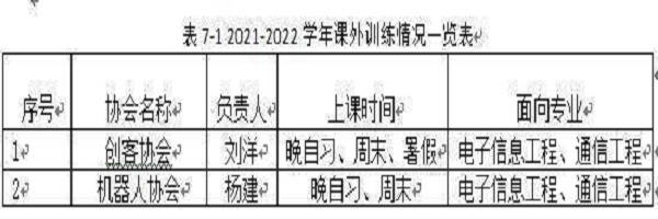 学院课外培训主要采用第二课堂实践教学体系完成学生的能力培养。主要通过学院的创客协会和创客专项工作室,利用课余和节假日时间对学生全天候开放,引导学生参加本专业对应的学科专业竞赛,通过参加学科专业竞赛沉淀下来的优秀成果引导学生申报软著、专利和学校的科技创新等项目。通过第一课堂和第二课堂的实践教学体系的融汇贯通,培养学生的创新品格和工程实践能力。