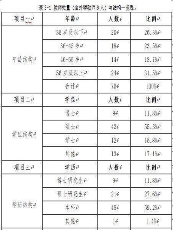 学院现有教职工76人,其中专任教师70人,外聘教师6人。