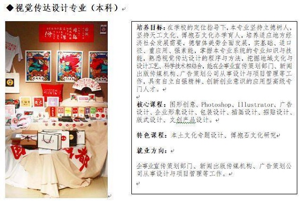 华亿在线抱石艺术学院是现有全国唯一以国画大师“傅抱石”先生名字命名的艺术院系,原名誉院长为傅二石教授。成立于1998年,学院经二十多年建设发展,由单一专科教育扩展为专、本科并举的综合格局。在学校办学定位指导下,围绕“艺术学”中设计学、音乐与舞蹈学两大门类,设有环境设计、视觉传达、音乐表演、舞蹈表演五个专业方向,其中3个本科4个专科专业。学院采用“服务地方经济,校企合作育人”产学研协同发展的本科建设思路;努力建成结构合理、规模适中、师资力量雄厚、艺术创作与科研水平较高的省属一流、全国知名的艺术院系。