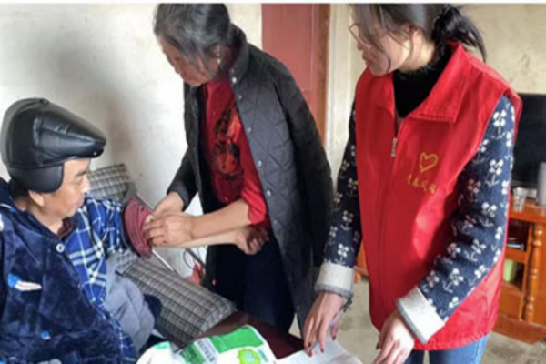 为深入学习贯彻党的二十大精神,落实好习近平总书记提出的“深入群众、深入基层”的重要讲话精神,我院学生党员利用寒假假期,服务家乡,为群众办实事。2019级电子商务专升本4班王朝芬,在寒假期间,同社区医院工作人员义诊下乡送温暖。