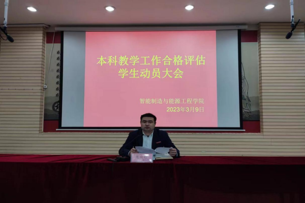 为迎接即将到来的本科教学工作合格评估,动员同学们以更好的精神风貌、更高的学习热情、更强的集体荣誉感积极投入到迎评工作中,2023年3月9日,智能制造与能源工程学院在仙女湖校区学术报告厅一楼召开本科教学工作合格评估学生动员大会,会议由学院党总支书记范向红主持,2021级全体同学和2020级部分同学参加了此次会议。