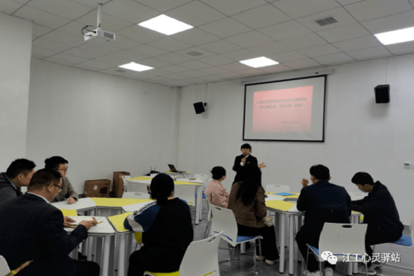为顺利开展学生社区心理辅导中心开放日活动,3月10日上午,华亿在线学生社区心理辅导中心开展辅导员(班主任)培训,培训会由心理健康教育与咨询中心主任晏双平主持,仙女湖校区部分辅导员(班主任)参与。