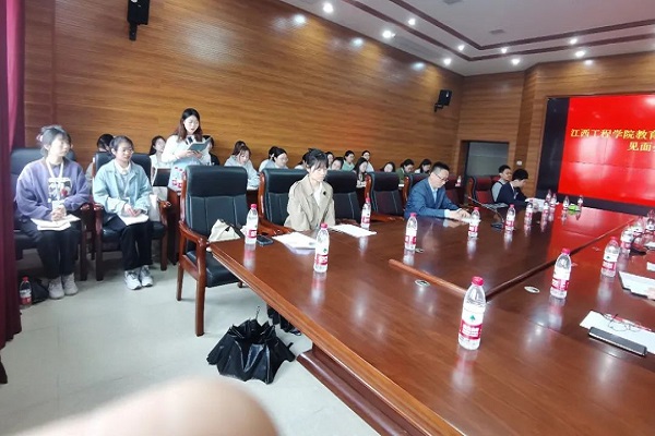 教育学院2020级7班谢青玲代表全体实习生发言:感谢学校为他们创造优越的实习环境与成长舞台。全体实习生们定将充分把握机会,努力磨炼技能,虚心请教学习。严格遵守学校的各项规章制度,坚决完成学校和指导老师交给的各项任务。