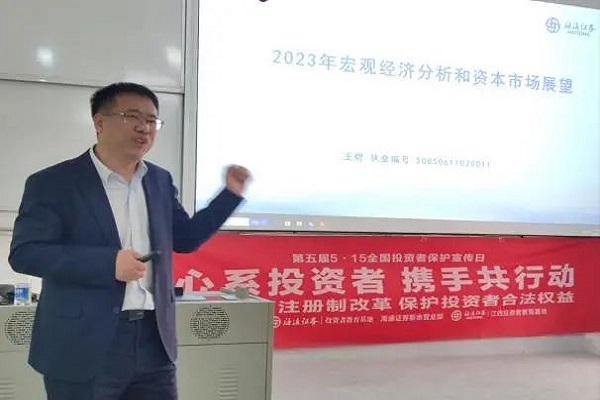 为切实提升学生金融素养,引导师生树立正确的金融观念,持续有效推进第二课堂活动,理清宏观经济分析脉络,把握好资本市场建设的战略方向,2023年5月12日下午,学院邀请了海通证券股份有限公司新余营业部资深证券投资顾问王煜,在文科楼南底楼多媒体教室举办了金融实务系列讲座第五期。本次讲座主题为“宏观经济分析与资本市场建设展望”,由学院金融工程教研室车成城主持,学院金融工程教研室老师与学生们参加了此次讲座。