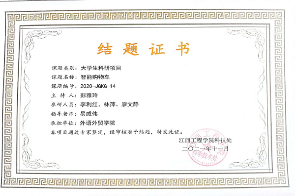 (2017级熊晴雯同学创新创业省级重点训练项目立项)