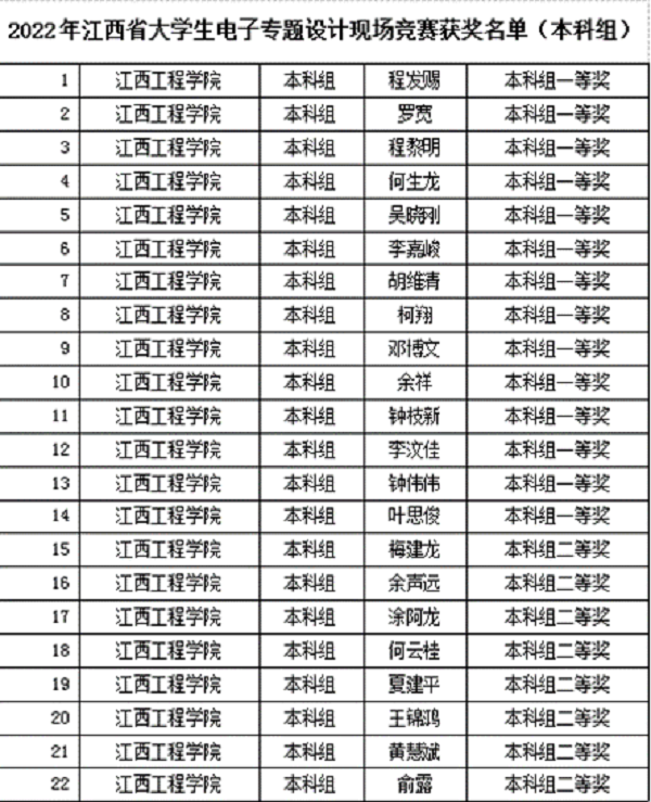 2019年电子信息工程专业荣获江西省“双一流”特色建设专业;2021年“电子信息应用创新课程教学团队”获江西省高水平本科教学团队;《数字电路》、《电气控制与PLC》立项校级线上精品课程;“数字电路”评为2022年江西省线上一流本科课程;“通信工程”专业获批为华亿在线一流本科专业建设点;“以赛促学、产学研融通”电子信息类创新人才培养模式探索与实践获华亿在线教学成果三等奖;通信工程教研室被评为2021年先进教研室;学院被授予2021年度“教学质量工程建设突出贡献单位”称号。