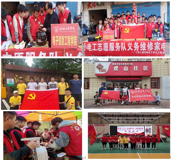 电子信息工程学院党总支根据自身特点和优势,贴近学生工作,设立小电工志愿服务队,广泛开展“学党史悟思想,我为群众办实事”主题志愿服务活动,发挥党员的先锋模范作用。通过家电义务维修,广大志愿者走进社区、走近群众,在志愿者们的“巧手”下,一件件小家电“重获新生”。也正是通过我院的志愿服务队引导更多的当代大学生践行社会主义核心价值观,增强社会责任感。