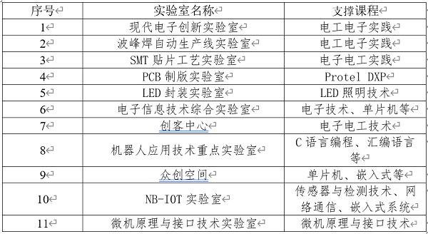 学院拥有丰富的实践教学资源以及先进的实验实训设备,先后共投入1200多万元建设“电子技术实验中心”、“通信技术实验中心”和“电子信息技术创新实验中心”