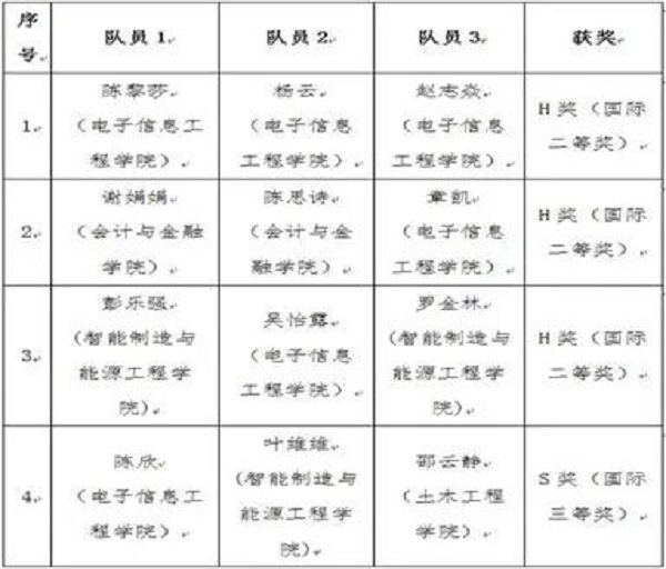 2022年5月,在美国(国际)大学生数学建模竞赛中,我院学生陈黎莎、杨云、赵志焱、吴怡露、章凯喜获H奖(国际二等奖),陈欣获S奖(国际三等奖)。