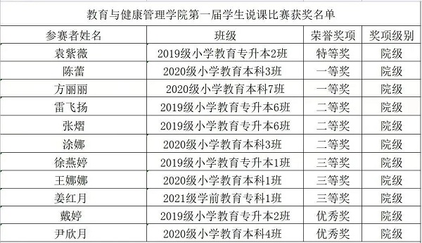 第一届学生说课比赛获奖名单