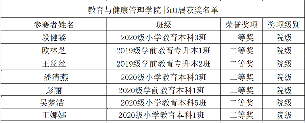 教育与健康管理学院书画展获奖名单