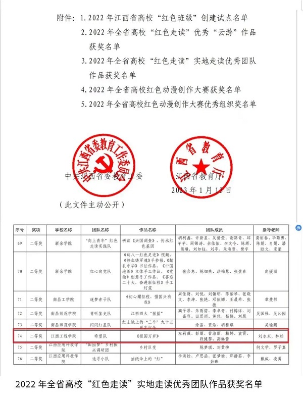 近期,按照省委教育工委、省教育厅印发的《关于在全省高校开展“红色走读”竞赛活动的通知》(赣教宣字〔2020〕12 号)文件精神,教育与健康管理学院推送优秀团队--希望队参加全省高校“红色走读”实地走读优秀团队作品《祖国万岁》获得二等奖。