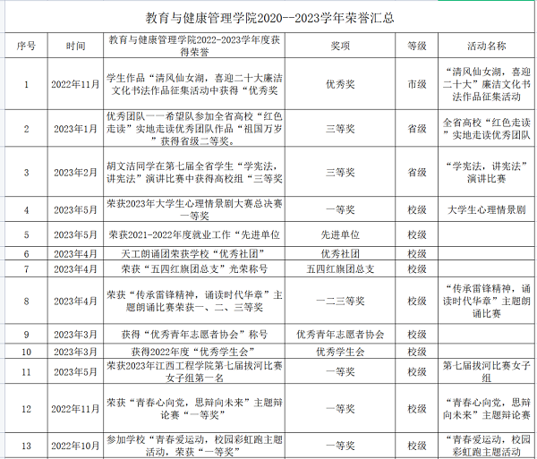 教育与健康管理学院学生学科竞赛成果