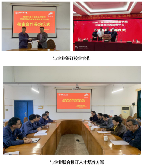 校企合作是应用型本科高校育人的显著特征。学院结合专业实际,与江西新钢机械制造有限责任公司、新余市精诚精密机械有限公司等11家企业开展了深入的校企合作,从师资培养、人才培养方案制(修)订、学生实习等方面进行了全方位的合作,进一步彰显应用型办学特色。