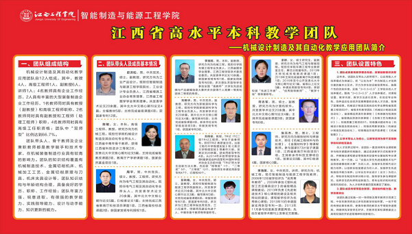 工业是国民经济的主导,而机械制造业是工业的基础产业。学院自成立起,就确立了以机械制造为学科专业发展的主旋律,经过多年的发展和建设,学院已形成了以智能制造为学科专业特色,机械设计制造及其自动化教学团队获批江西省2020年高水平本科教学团队,机械设计制造及其自动化专业获批江西省2021年度一流本科专业建设点,UG(机械产品设计)获批江西省一流本科课程。学院秉承培养智能制造工匠人才的使命,着力聚焦人才培养、学科建设、基层党建、意识形态等方面开展工作,努力增强师生爱国主义情怀、国家使命和责任担当,不断激发师生探究、合作、实践的价值取向,树立远大的职业理想和工匠精神。