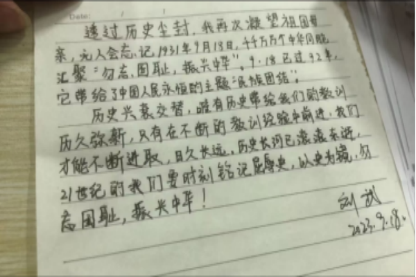随后各班团支书利用班级多媒体播放《国防教育宣传片》和“九一八事变”相关视频。虽然“九一八事变”已经过去92年,但历史的记忆在回望中更加刻骨铭心。沉重的历史教训点燃了学生保卫国家领土、领海、领空主权完整,防备敌人侵略的爱国热情,震感的国防建设激发了学生关心国防、热爱国防、建设国防、保卫国防的政治热情。
