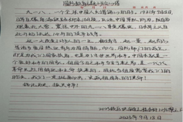 主题班会上,辅导员从国防教育日的内涵、由来和目的出发,解读了设立国防教育日的重要意义,并介绍了国家开展国防活动的具体任务,以“防空警报试鸣”、“九一八事变”为例阐述了开展国防教育的重要性,感受当今和平年代的来之不易。