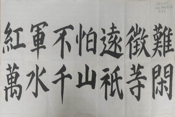 作品简介:新时代的长征路上,红军将士的信仰之光、信念之火、信心之歌,必将生生不息、一直传递,因为信仰,所以忠诚。万里长征路,每一个脚步都坚定地指向同一个方向。万里长征,红军战士无怨无悔“跟着走”,只因他们有一个坚定的信念:跟着共产党,就能打胜仗!上下同欲,百折不挠;旗帜所指,所向披靡。纵观长征路上的每一场战斗、每一次生死关头,党员干部始终身先士卒、冲锋在前,他们立身为旗,激励着官兵前行。