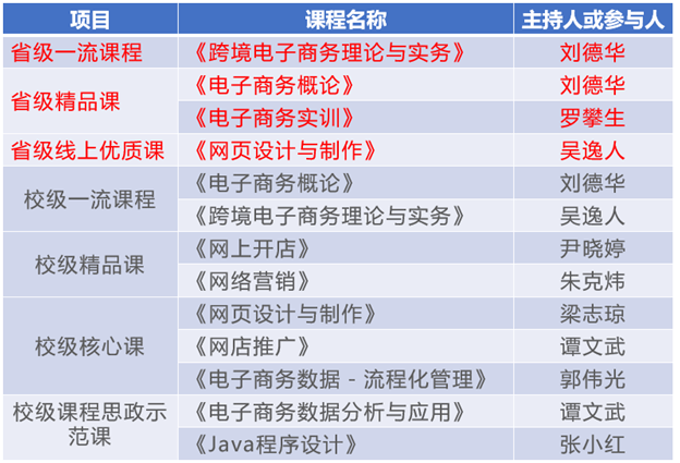 网络营销学、电子商务安全与支付、电子商务经济学、跨境电子商务理论与实务、网店图片拍摄与处理、网店运营与管理。