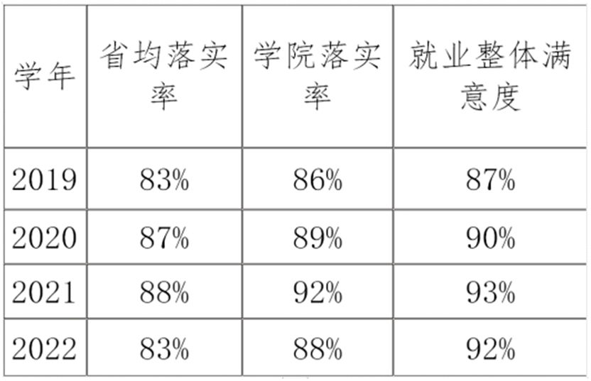 学院自成立以来,高度重视学生就业工作,稳步构建访企拓岗“1+3+N”模式,即充分发挥学院的“1个主体”作用;找准园区、产业和优秀企业“3个着力点”,密切对接人才供给;N是挖掘多个岗位,通过示范带动辐射更多企业提供更多岗位,并利用就业信息网站等平台每年为毕业生提供有效就业岗位信息超15000条,持续为社会输送优秀人才。近年来,我院毕业去向落实率一直高于省均落实率,毕业生就业整体满意度稳定在90%以上,在全校二级学院毕业生就业满意度中稳居前列,也因此学院在2017、2018连续两年被评为“优秀就业工作单位”;2020和2023年度就业工作中被评为“就业工作先进单位”。