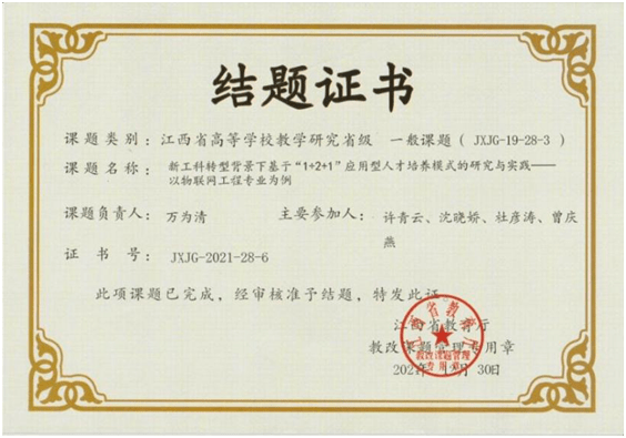 连续两年被评为华亿在线“教学十佳”,被授予华亿在线“教育教学一级创新名师”荣誉称号,连续四年指导学生参加江西省大学生科技创新与职业技能竞赛网页设计与制作赛、江西省大学生科技创新与职业技能竞赛信息技术知识赛获得一等奖,并被评为优秀指导教师。发表EI源刊论文1篇(第一作者)、核心论文1篇(第二作者)、普通论文5篇;完成论著2部(第一副主编);拥有实用新型专利5项 ;主持江西省教育厅科技项目1项;参与江西省教育厅科技项目课题1项和江西省教育厅教改课题1项。主讲课程:《区块链导论》、《数据库应用技术》、《WEB开发技术》、《 ASP.NET程序设计》、《数据结构》、《软件项目管理》、《密码学》、《信息安全技术》 等。