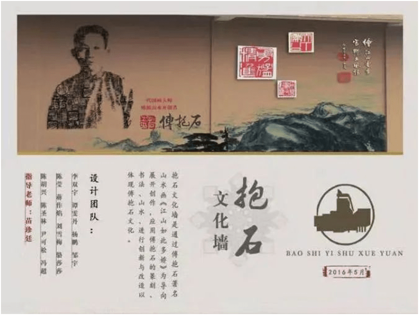 学院是全国唯一一所以傅抱石大师名字命名的艺术院系,紧紧围绕学校办学定位,立足新余,服务江西,辐射全国,秉承傅抱石先生“其命惟新”的艺术精神和“笔墨江山”的实践精神,大胆创新,开拓进取,在艺术设计专业建设的基础上,增设《傅抱石专题设计》课程进行理论及实践研究,从美术遗作中提出元素再应用于本土相关领域,打造抱石文化品牌。已落成的成果有:《丽人行》大型空混壁画项目、傅抱石印章形象墙项目、傅抱石作品展馆项目。