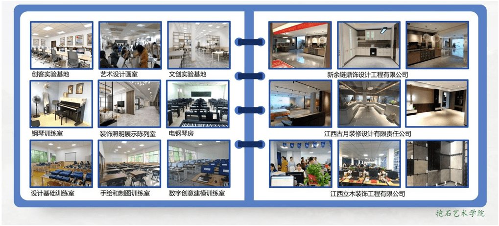 学院拥有独立的教学大楼,建筑面积2.5万平方米,配备了文创创客实训室、数字影像实训室、装饰照明实训室、模型制作实训室、艺术作品展览厅、演艺厅、原声音乐厅、电钢琴房、钢琴房、舞蹈房、名家工作室、专业画室等共18类68间实践实训室,为实践教学提供了有力保障。